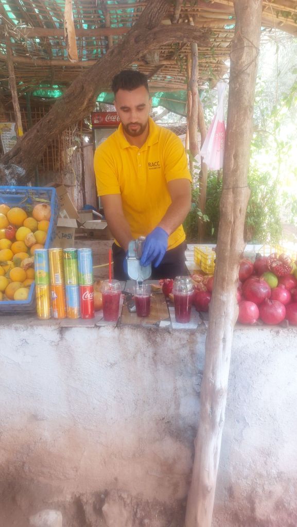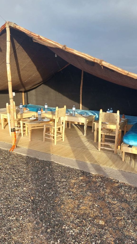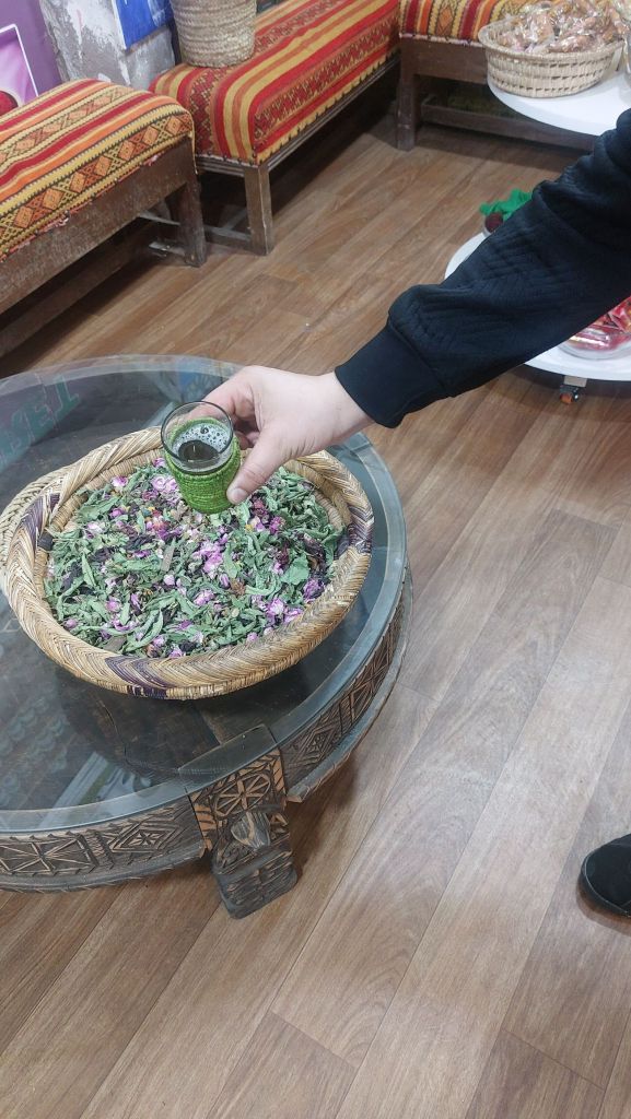 The sound of Moroccan music plays at low volume, adding to the spirit of the surroundings, creating an authentic experience.