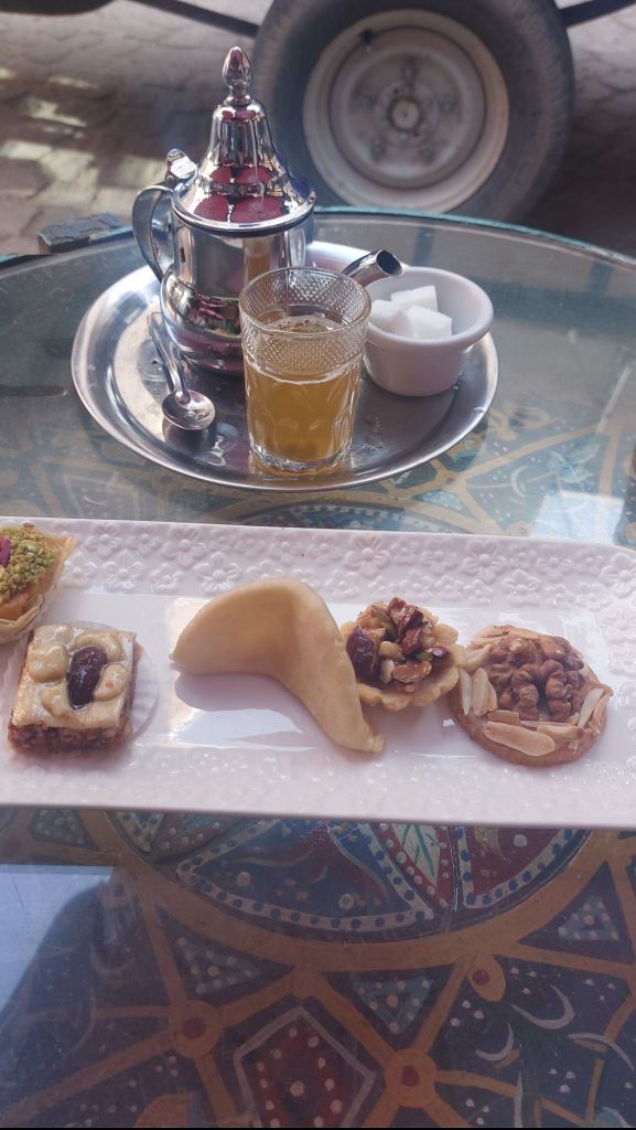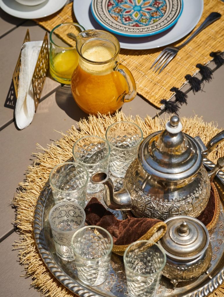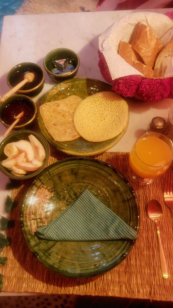 Most riads provide their guests with breakfast, which is often sweeter than we are used to in the west. Some riads cook omelettes and there is always fresh orange and homemade yoghurts and jams served with traditional bread.