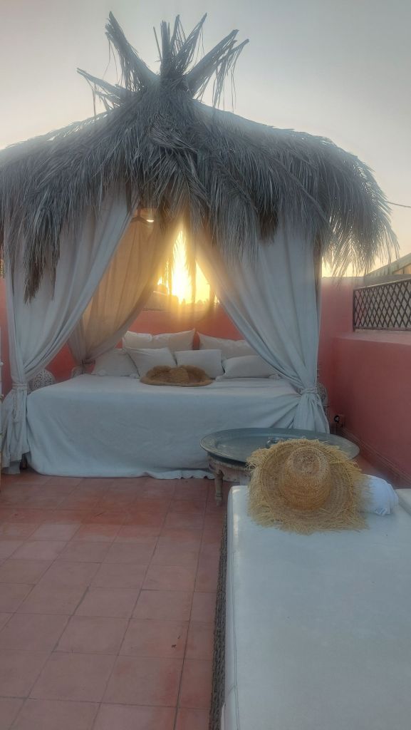 I love sunbathing on the rooftop, listening to the call to prayer from the Koutoubia mosque and the musicians in the square.