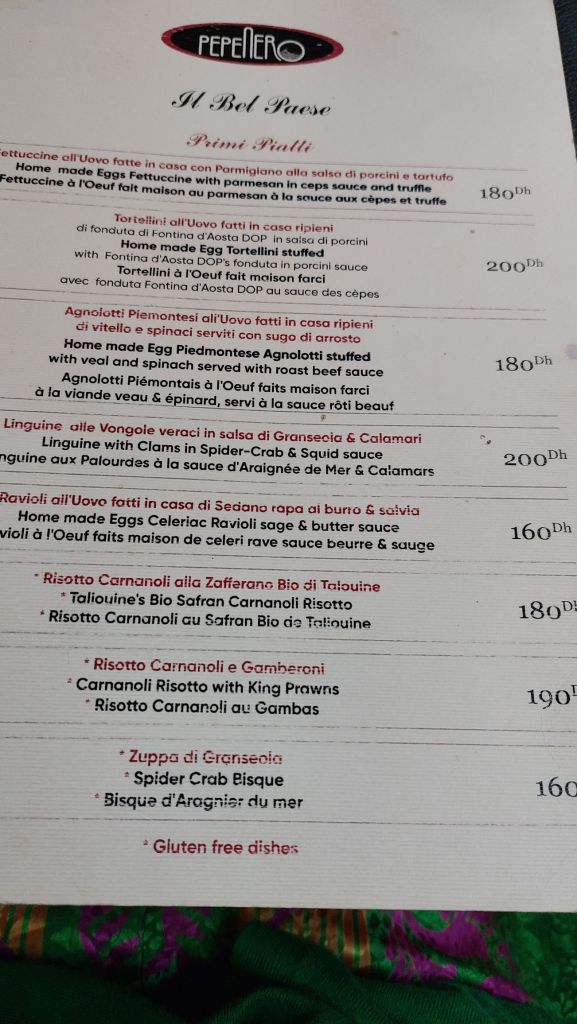 I would certainly recommend Pepe Nero if you enjoy Italian food and want a change from Tagine or couscous.