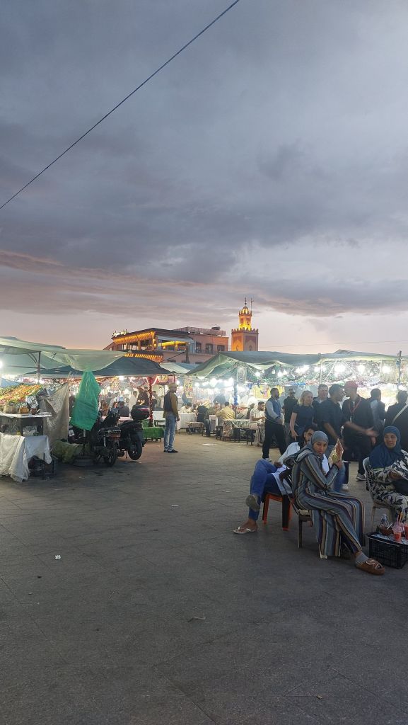 People from Marrakech and beyond come together to meet each other, alongside tourists all vying for space to watch the spectacle unfold.