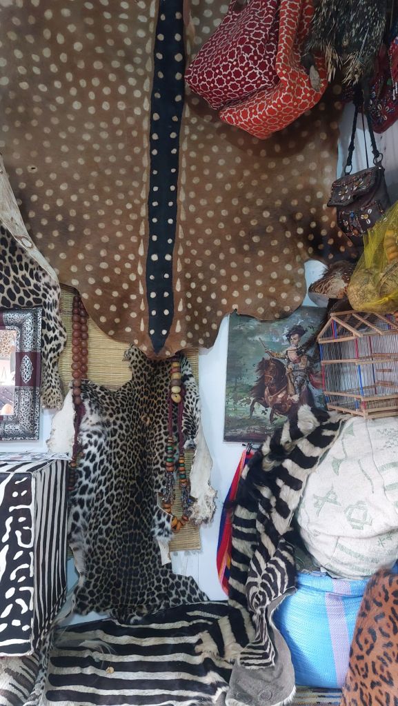There are dried herbs, oils, potions, tea, and the traditional Moroccan lip stain.