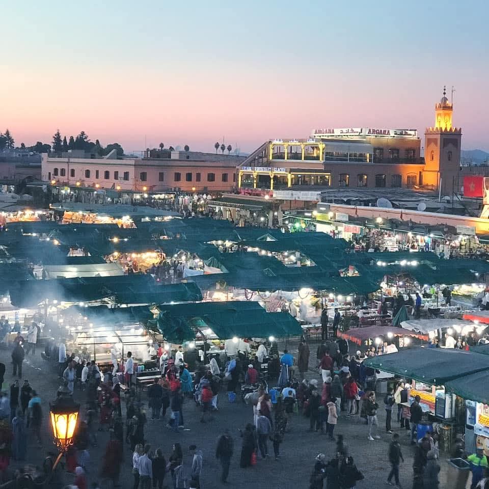 In the evening, I like to watch the sunset as the Jamaa El Fnaa comes alive with thousands of visitors.