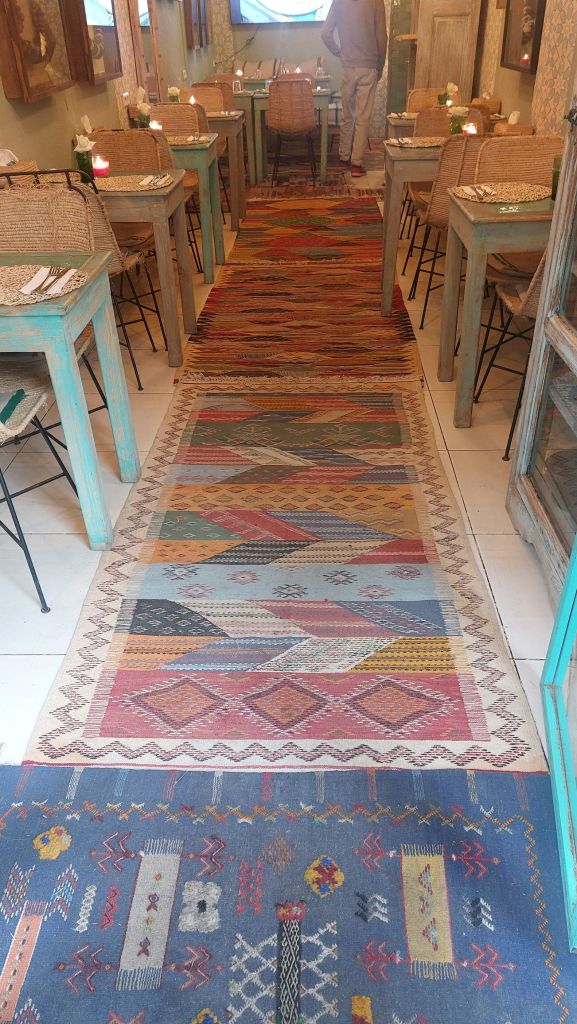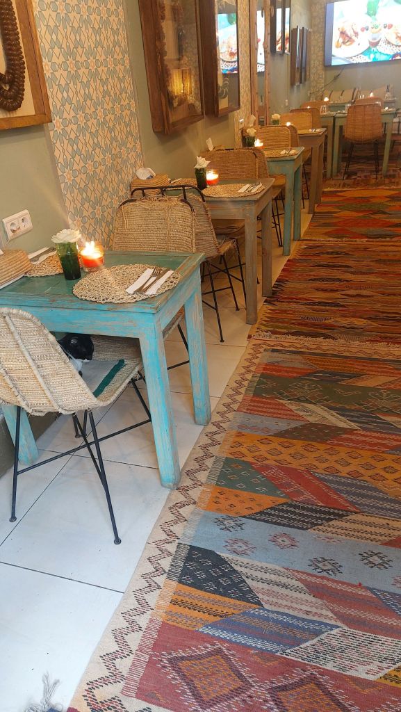 The interior decor of this little establishment is pleasant with Amazigh artefacts adorning the walls and colourful rugs strewn across the floor.